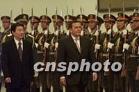 國(guó)務(wù)院總理朱镕基三十一日在北京舉行儀式歡迎德國(guó)總理施羅德訪華。中新社記者 滿會(huì)喬 攝