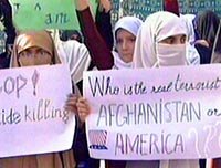 二百多名巴基斯坦婦女兒童三十一日走上街頭,反對美國對阿富汗進行軍事打擊。美國對阿富汗的軍事打擊日前進入第四周。