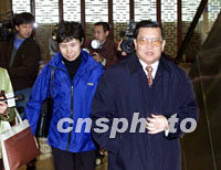 出席世貿組織第四屆部長級會議的中國代表團一行四十人,六日上午在乘機前往卡塔爾首都多哈出席世貿組織第四屆部長級會議。圖為中國代表團首席談判代表龍永圖(右一)等出發前在北京首都國際機場。中新社圖 張宏江 攝