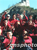 來自世界四十多個國家的男模冠軍六日在北京游覽八達嶺長城。2001年度世界十佳男模本月十二日將在他們中產生。中新社圖 武仲林 攝