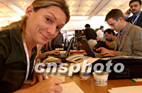第四屆WTO部長會議九日在卡塔爾首都多哈開幕,來自世界各國的七百多名記者匯聚新聞中心。圖為會議開幕前忙碌的記者們。 中新社記者 錢興強 攝