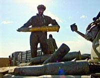 阿富汗反塔聯(lián)盟一名戰(zhàn)士十日在馬扎里沙里夫附近搬運彈藥。阿富汗北方聯(lián)盟方面宣稱,他們已進入塔利班控制的北方軍事重鎮(zhèn)馬扎里沙里夫,為進一步進攻阿富汗首都喀布爾鋪平了道路。中新社圖