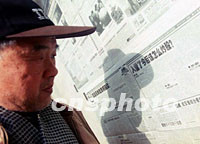 入世后,中國經(jīng)濟(jì)的走向是許多百姓關(guān)心的大事。一位北京股民十日在街頭的報欄仔細(xì)閱讀報紙對入世后股市走勢的分析文章。中新社圖 張勤 攝