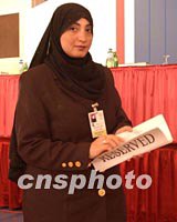 第四屆WTO部長會議十日將在卡塔爾首都多哈審議通過中國加入世貿組織。圖為身穿阿拉伯服裝的穆斯林女會務人員,在會前為各國代表貼座位標。中新社記者 錢興強 攝