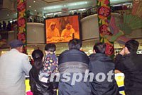 十日晚,WTO多哈會議將接納中國加入世貿(mào)組織,北京市民在商場緊張興奮地關注電視臺的有關報道。中新社記者 張勤 攝