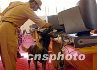 WTO多哈會議10日晚審議通過中國入世,卡塔爾警方加強戒備,使用警犬檢查記者們的轉播器材。中新社記者 錢興強 攝