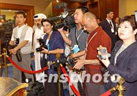第四屆WTO部長級會議十二日在多哈舉行中國臺北加入世貿組織議定書簽字儀式。中國臺北成為世界貿易組織第144個成員國。圖為采訪簽字儀式的各國記者。中新社記者 錢興強 攝