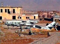 阿富汗北方聯盟日前正采取各種措施,恢復喀布爾的正常生活。圖為戰后千瘡百孔的塔利班喀布爾軍事基地。