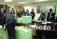 澳門娛樂場博彩經營牌照競投七日截標,共有二十一家公司參加競投。圖為博彩監察暨協調廳的工作人員為競投者辦理驗標手續。中新社傳真宗金柱攝