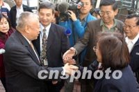 香港行政長官董建華十二月十五日在中環(huán)圣約翰大廈前與支持他競選的市民握手。中新社傳真 任海霞 攝