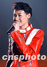 香港當紅歌星張柏芝十二月二十一日晚參加澳門回歸祖國兩周年“歌舞星輝耀濠江”的演出。中新社傳真 任海霞攝