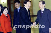 國務院總理朱镕基十一日離開北京前往孟加拉國和印度訪問,國務院副總理錢其琛等前往人民大會堂送行。中新社記者 滿會喬 攝
