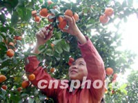 廣東云浮市南盛鎮(zhèn)盛產的沙糖桔因其“皮色鮮亮、汁多爽甜”而馳名。在豐收季節(jié),每天有七萬多公斤銷往香港等海外市場,為當?shù)毓r帶來頗豐的收入。中新社圖 黃耀輝 攝