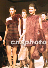 第28屆中國國際裘皮制品交易會16日在北京國際貿(mào)易中心舉行。此次會議的主要議題是加入WTO對中國裘皮業(yè)的影響及應(yīng)對和2002年國際裘皮流行趨勢等。圖為裘皮之夜時(shí)裝表演中模特展示精美皮草。中新網(wǎng)圖 余瑞東 攝