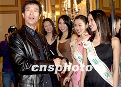 圖文:擔任華裔小姐評判 鄭少秋與佳麗談笑風生
