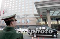 中國武警戰士二十日在北京國際俱樂部飯店前執行警戒任務,迎接將于二十一日到訪的美國總統布什。中新社記者 毛建軍 攝