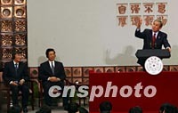 中國(guó)國(guó)家副主席胡錦濤二十二日在北京清華大學(xué)歡迎訪華的美國(guó)總統(tǒng)布什演講。中新社記者 賈國(guó)榮 攝