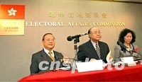 香港選舉管理委員會(huì)主席胡國興(中)、委員梁乃鵬(左)及成小澄博士28日出席宣布董建華為香港特區(qū)第二任行政長官候任人新聞發(fā)布會(huì)。中新社圖 洪少葵 攝