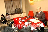 二月二十八日五時(shí),董建華獲知成為香港特區(qū)第二任行政長官候任人后發(fā)表講話,對(duì)香港未來充滿信心。中新社記者 任海霞 攝