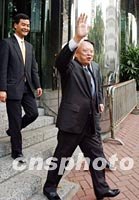 二月二十八日董建華得知成為香港特區(qū)第二任行政長官候任人后步出圣約翰大廈,并面帶笑容向記者招手。中新社記者 任海霞 攝