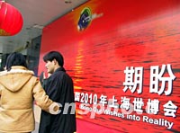 三月的北京,上海申辦2010年世博會的宣傳畫已經隨處可見。中新社記者 盛佳鵬 攝