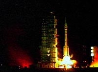 二十五日晚十點十五分,中國自主研制的“神舟三號”實驗飛船在酒泉衛星發射中心順利升空。