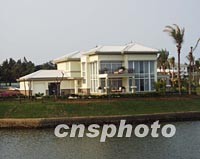 以別墅群為主的海南博鰲金海岸大酒店二期工程于月前新峻工近五十套,將承擔(dān)四月中旬舉行的博鰲亞洲論壇首屆年會(huì)貴賓接待任務(wù)。圖為在綠水之央的總統(tǒng)別墅,尊貴中透著典雅宜人。中新社圖 王辛莉 攝