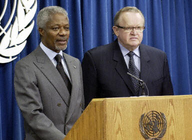聯(lián)合國秘書長安南任命杰寧難民營真相調(diào)查團(tuán)(圖) 2002年04月23日 09:47 聯(lián)合國秘書長安南與芬蘭前總統(tǒng)阿赫蒂薩里在新聞發(fā)布會(huì)上。(法新圖) 中新網(wǎng)北京4月23日消息:聯(lián)合國秘書長安南星期一說,芬蘭前總統(tǒng)阿赫蒂薩里將率領(lǐng)調(diào)查團(tuán),前往西岸巴勒斯坦城市杰寧的難民營。 據(jù)德新社報(bào)道,安南表示這是根據(jù)聯(lián)合國安理會(huì)的決議作出的決定。安理會(huì)上周對(duì)美國的提議進(jìn)行表決,決定向杰寧難民營派出調(diào)查團(tuán),調(diào)查有關(guān)以色列制造屠殺的指控。 聯(lián)合國前難民事務(wù)專員日本人緒方貞子和國際紅十字會(huì)前主席瑞士人索馬魯加都將參加這個(gè)調(diào)查團(tuán),退役的美國將軍威廉·納什和曾經(jīng)領(lǐng)導(dǎo)過駐波斯尼亞聯(lián)合國警察部隊(duì)的愛爾蘭人菲茨杰拉德將擔(dān)任調(diào)查小組的軍事顧問。 安南表示:“這個(gè)小組的成員都是經(jīng)驗(yàn)豐富,具有較高水準(zhǔn)的專業(yè)人士。我需要有一個(gè)具有獨(dú)立意志的調(diào)查小組。”