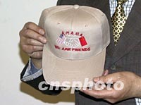 中國(guó)國(guó)家副主席訪美在即,美國(guó)僑界熱烈期待。其中美國(guó)江浙工商總會(huì)特別設(shè)計(jì)制作了一頂紀(jì)念帽準(zhǔn)備在胡錦濤訪問紐約的時(shí)候送給他。這是一頂米色的帽子,用咔嘰布作成,帽子的中央有一個(gè)橢圓型的標(biāo)志——兩只手握在一起,兩只手的袖口分別是中國(guó)國(guó)旗和美國(guó)國(guó)旗,并用中英文書寫“我們永遠(yuǎn)是朋友”。旅美華人社團(tuán)借此祝愿胡錦濤訪美成功,并表達(dá)美國(guó)華人對(duì)中美友好的祝福。中新社記者 趙海燕 攝