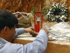 在耶路撒冷爆炸中喪生的中國工人蔡獻陽和林春美的遺體25日晚運抵福建莆田死難者所在的村子,并分別于26日上午8時和下午1時在家人和親友的安排下各自舉行了遺體的安葬儀式。
