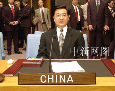 胡錦濤會見安南 雙方就中東等問題交換看法 2002年04月30日 13:44 ![]() 胡錦濤聯合國會晤安南。中新社記者 陳建 攝 ![]() 胡錦濤在聯合國安理會做“五秒鐘代表”。中新社記者 陳建 攝 ![]() 胡錦濤在聯合國副秘書長陳健、中國