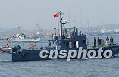 中國北方航空公司一架客機5月7日晚21時24分在大連海域失事,機上共有乘客103人,機組人員9人。圖為救援船只正在打撈失事飛機的殘骸。中新社記者 錢興強 攝