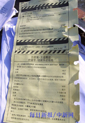 事故現場打撈上來的航海日志