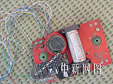 圖為記錄“五·七”空難飛機數據的“黑匣子”信標發射儀,其已無信號的“黑匣子”主體仍沉于泥中,目前正在加緊打撈。飛機另一記錄艙音信號的“黑匣子”已于昨天被打撈出水。中新社王麗南攝