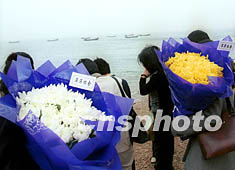 在大連“五·七”空難中失去親人的家屬們,連日紛紛到海濱拋撒鮮花,寄托無盡哀思。王麗南 攝