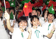 圖:澳門學生歡迎中國國家足球隊