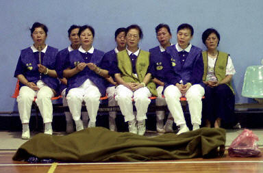 圖:佛教徒在臺灣華航墜機遇難者死尸旁祈禱