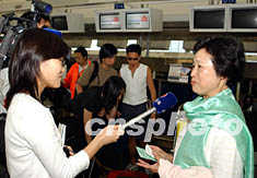 五月二十六日上午,從香港赴臺北的航班正常起飛,臺北乘客關注“華航失事”,但并未影響他們搭乘“華航”班機的心情。中新社記者 潘索菲 攝