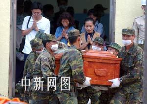 多數華航遇難乘客家屬選擇土葬。5月26日,臺灣澎湖馬公空軍基地成為搜索到的遇難乘客尸體辨認中心。中新社傳真任晨鳴攝