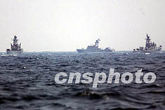 5月27日下午,大批臺灣海軍軍艦在臺灣澎湖外海搜索失事華航客機乘客。中新社記者 任晨鳴 攝