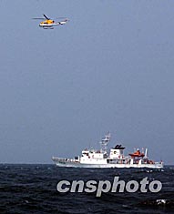 5月27日下午,眾多臺灣船只在直升機配合下在臺灣澎湖外海海面搜索失事華航客機乘客。中新社記者 任晨鳴 攝
