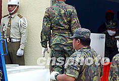 五月二十八日臺灣澎湖地區氣溫高升,設在馬公空軍基地的失事華航客機遇難乘客尸體辨認中心空氣污濁,士兵緊急加運大量冰塊降溫。中新社記者 任晨鳴 攝