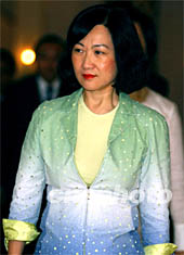 葉劉淑儀6月24日出席董建華宣布新一屆“內(nèi)閣”名單大會,五十一歲的葉劉淑儀連任責任重大的保安局局長。中新社傳真 任晨鳴 攝