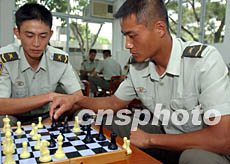 駐守香港新界的中國人民解放軍陸軍部隊除了軍事技術高超外,不少官兵還是國際象棋高手。任晨鳴 攝