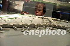 一日,香港特別行政區在北京世紀壇舉辦“回顧過去,展望未來”展覽,香港機場的立體模型吸引了一名男孩駐足觀看。作者:杜洋