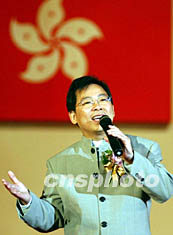 圖:張明敏為香港特區(qū)第二屆政府就職煙花匯演演唱