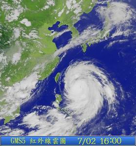 圖文:第5號臺風未來4、5天里將襲擊中國東南沿海 2002年07月02日 15:53 ![]() 中新網北京7月2日消息:根據中央氣象臺的最新消息,在未來四、五天里,中國東南沿海將受到第五號臺風影響。 氣象監測結果顯示,目前在西北太平洋上有五號和六號兩個熱帶風暴活動。其中,第五號強熱帶風暴已經加強為臺風,正以每小時20公里左右的速度向西北方向移動,逐漸靠近中國東南沿海,且強度仍在不斷增加。 據中央氣象臺預測,受五號臺風影響,從7月4日至7日,福建、浙江、上海、江蘇南部沿海、山東沿海將出現風雨天氣。其中,浙江地區所受影響將最為嚴重。東海、黃海將有大風。