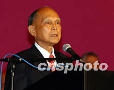 七月三日,香港廣東社團總會在香港舉行慶祝香港特區政府成立五周年以及董建華連任第二屆特區政府行政長官聯歡宴會。該會總監霍英東致詞。中新社圖潘索菲攝