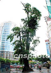 五日清晨,當福州市園林工人收拾被一場狂風暴雨刮得一地的殘枝敗葉時,發現市區一棵“破布木”樹上方竟寄生著一棵高三米左右的榕樹。生命力極強的榕樹樹根緊緊地裹著“破布木”樹干,頑強地挺立在它的枝頭。遠遠望去,“破布木”樹的寬葉子和榕樹的小葉子隨風搖曳,為熱鬧的都市增添情趣。作者:楊婀娜