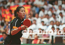 國家乒乓球隊成立五十周年之際,2002年“清華啟迪杯”中國乒乓球精英擂臺賽七日晚在北京拉開戰幕,本次擂臺賽特邀孔令輝、馬林、王楠、張怡寧四位國手進行精彩表演。圖為王楠正在比賽中。作者:張勤